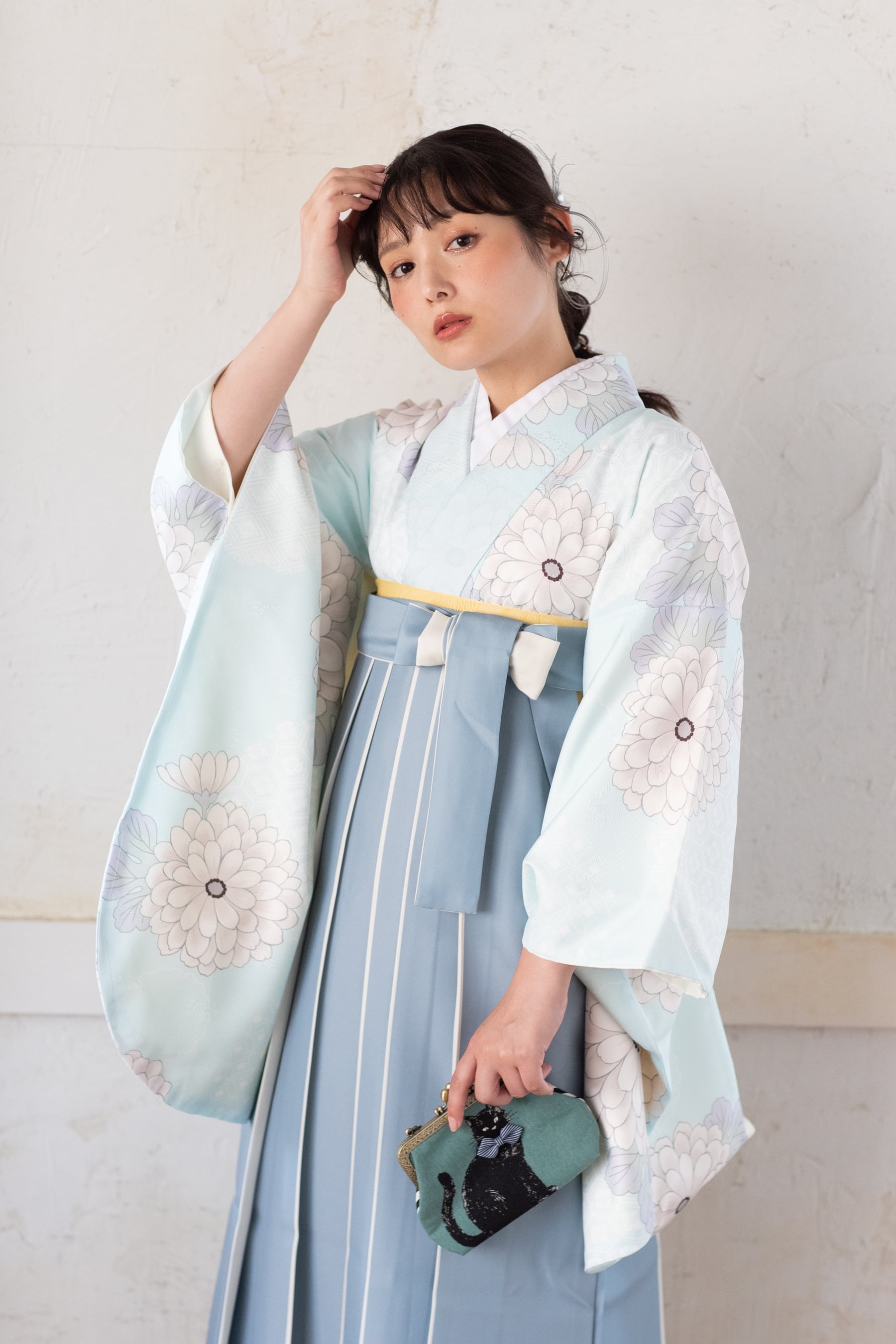 Kimono Sienne 卒業式袴3点セット 菊 二尺袖着物 袴 ミント×くすみブルー 卒業式