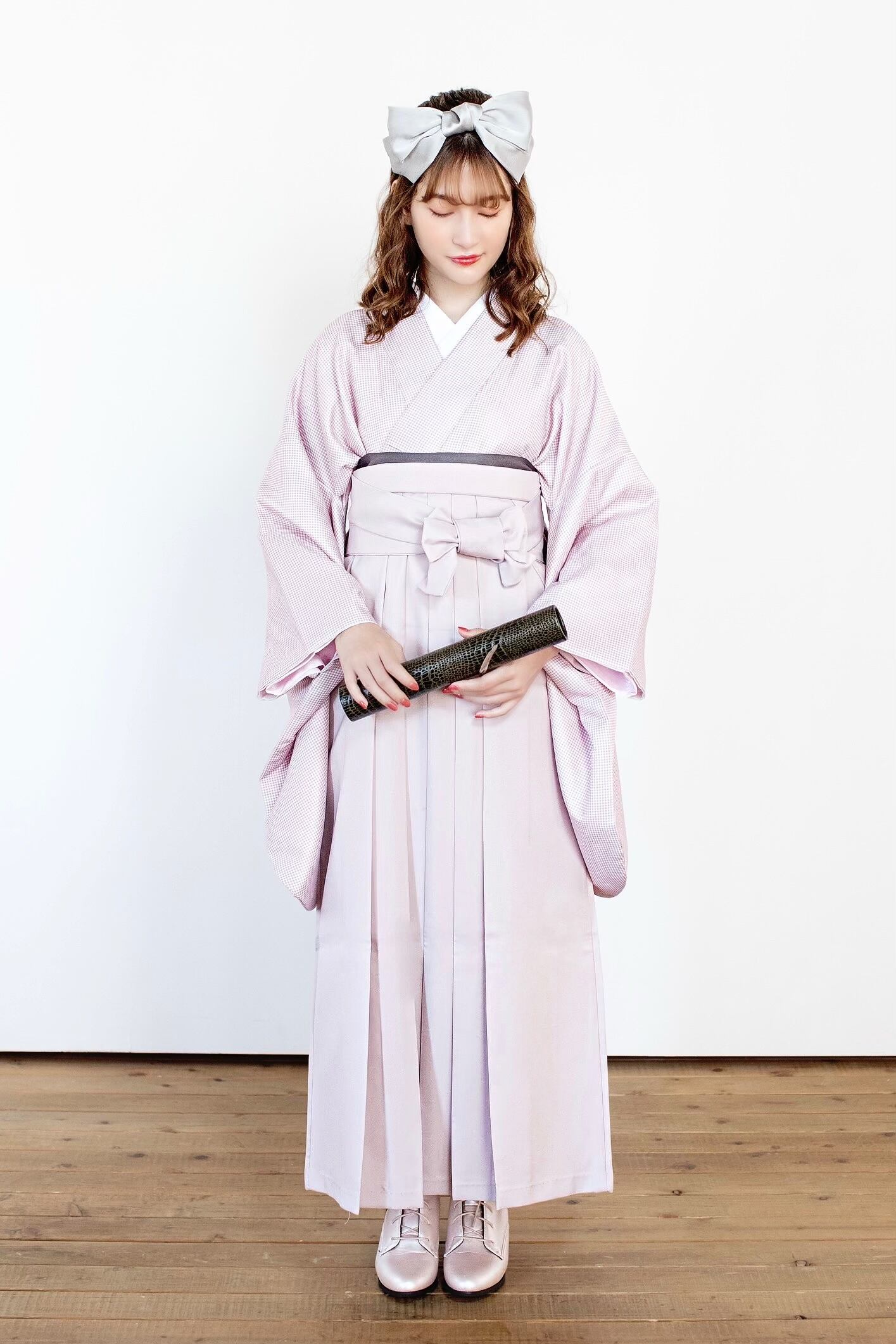Kimono Sienne 卒業式袴3点セット チェック柄 二尺袖着物 ピンクチェック×薄ピンク 卒業式