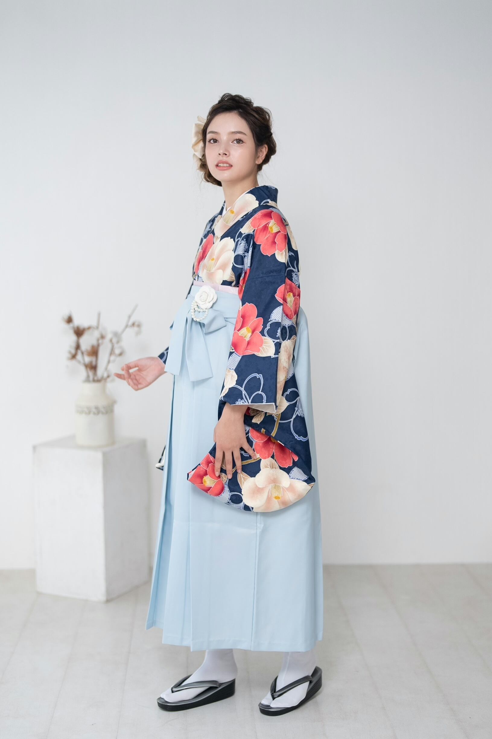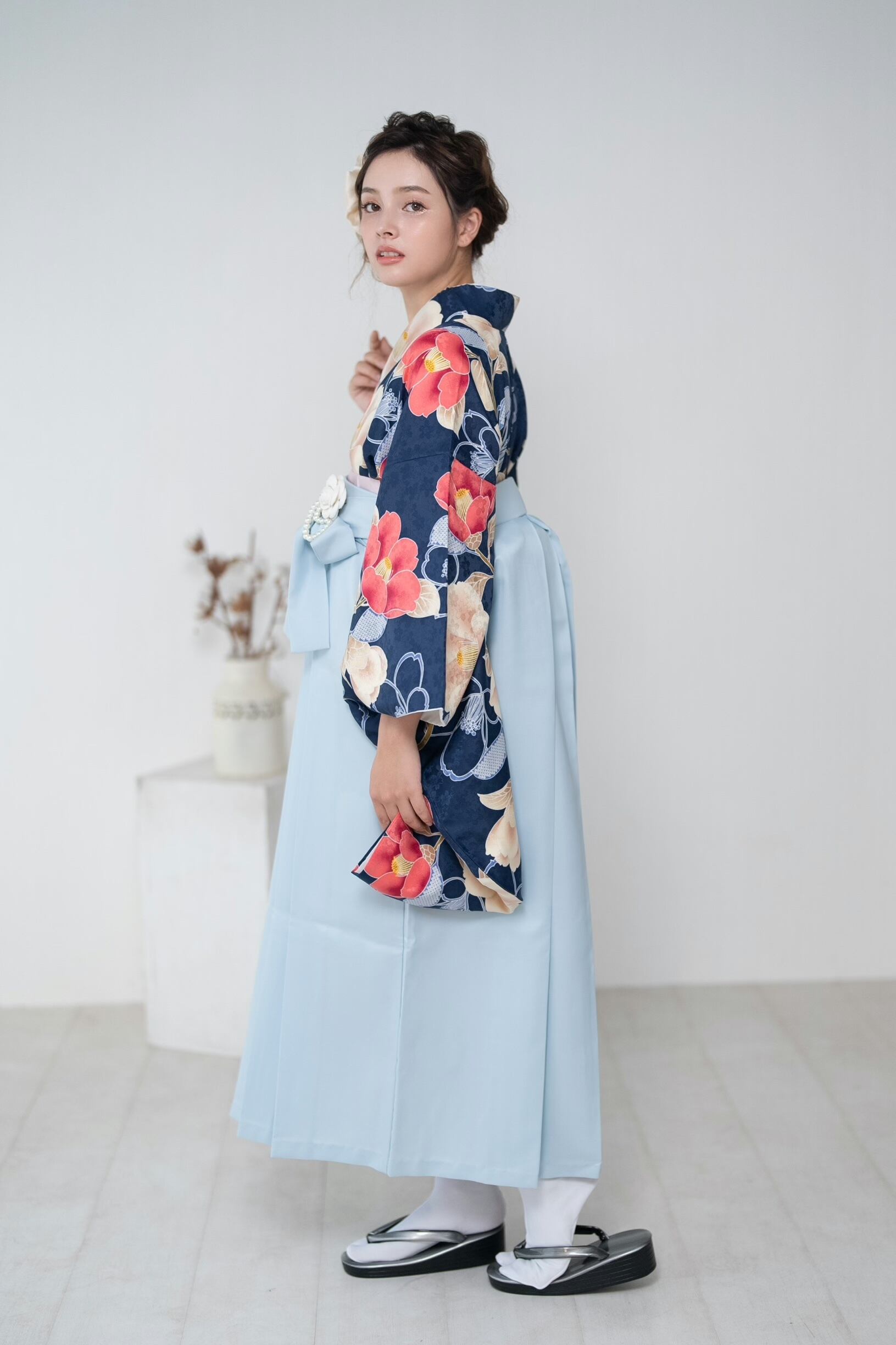 Kimono Sienne 卒業式袴3点セット 紺にクリームとピンクの椿 二尺袖着物 袴 卒業式