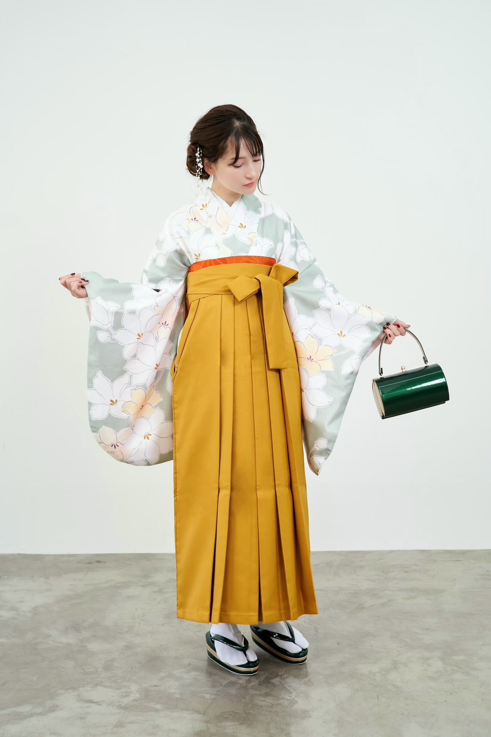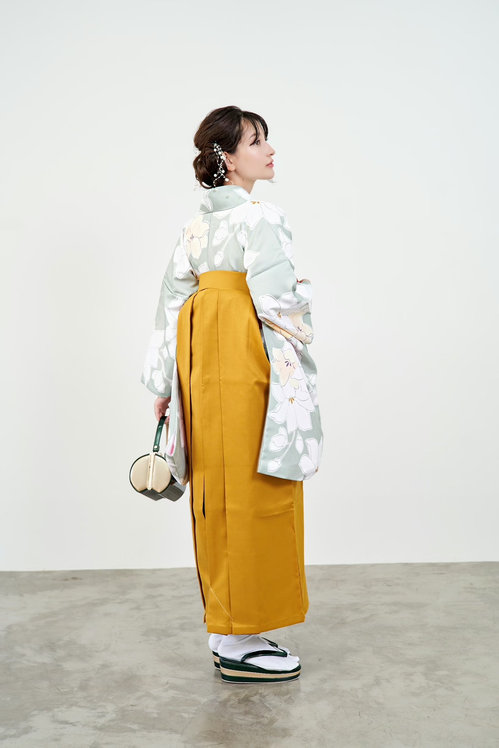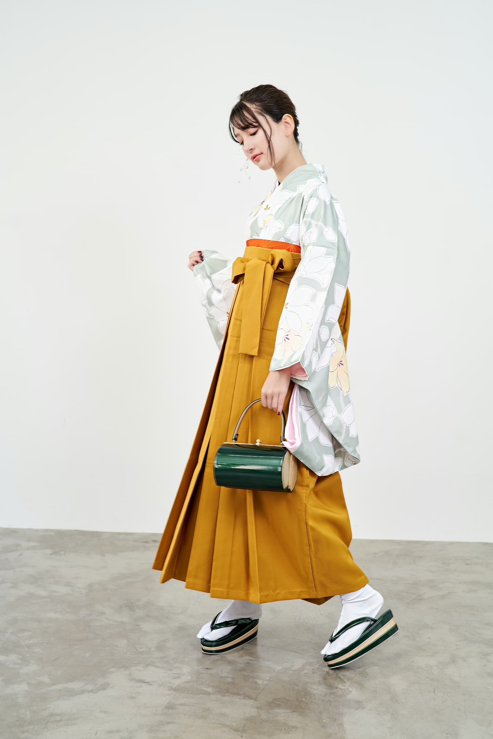 Kimono Sienne 卒業式袴3点セット ライトグリーン×マスタード 袴 二尺袖着物 袴 卒業式